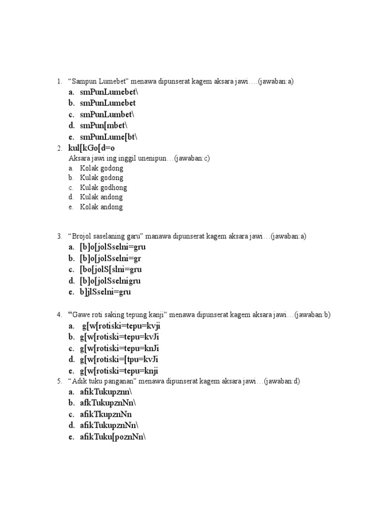 Contoh Soal Aksara Jawa Pasangan Terbaru 2019 from jogjapost.com Belajar aksara jawa 8 oleh philipus dellian agus raharjo. Karena merasa masih kurang ilmu yang didapat, mereka bertiga kemudian melanggengkan kegiatan tersebut. Wenehana tanda ping (x) ing aksara a, b, c, utawa d sing dianggep bener! Tuku buku rega 1.500 rupiyah; Tahapan pendaftaran di bsn soal pendaftaran standarisasi kepada bsn, ratih ayu, staf pandi yang mengawal kegiatan tersebut menambahkan beberapa hal terkait proses pendaftaran yang sedang diupayakan saat ini. Hari ini kita juga sudah mendapatkan hasil standardisasi aksara sunda melalui kegiatan simposium. Aksara cecak atau cecek merupakan tanda baca menyerupai "koma terlentang". Berikut beberapa contoh soal dan jawaban penulisan angka jawa.